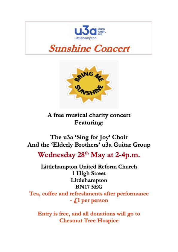 In this What’s On section we shall be keeping you up to date with what we have planned at Littlehampton u3a over the coming months but please don’t forget that the weekly Bulletin is also an excellent source of information.